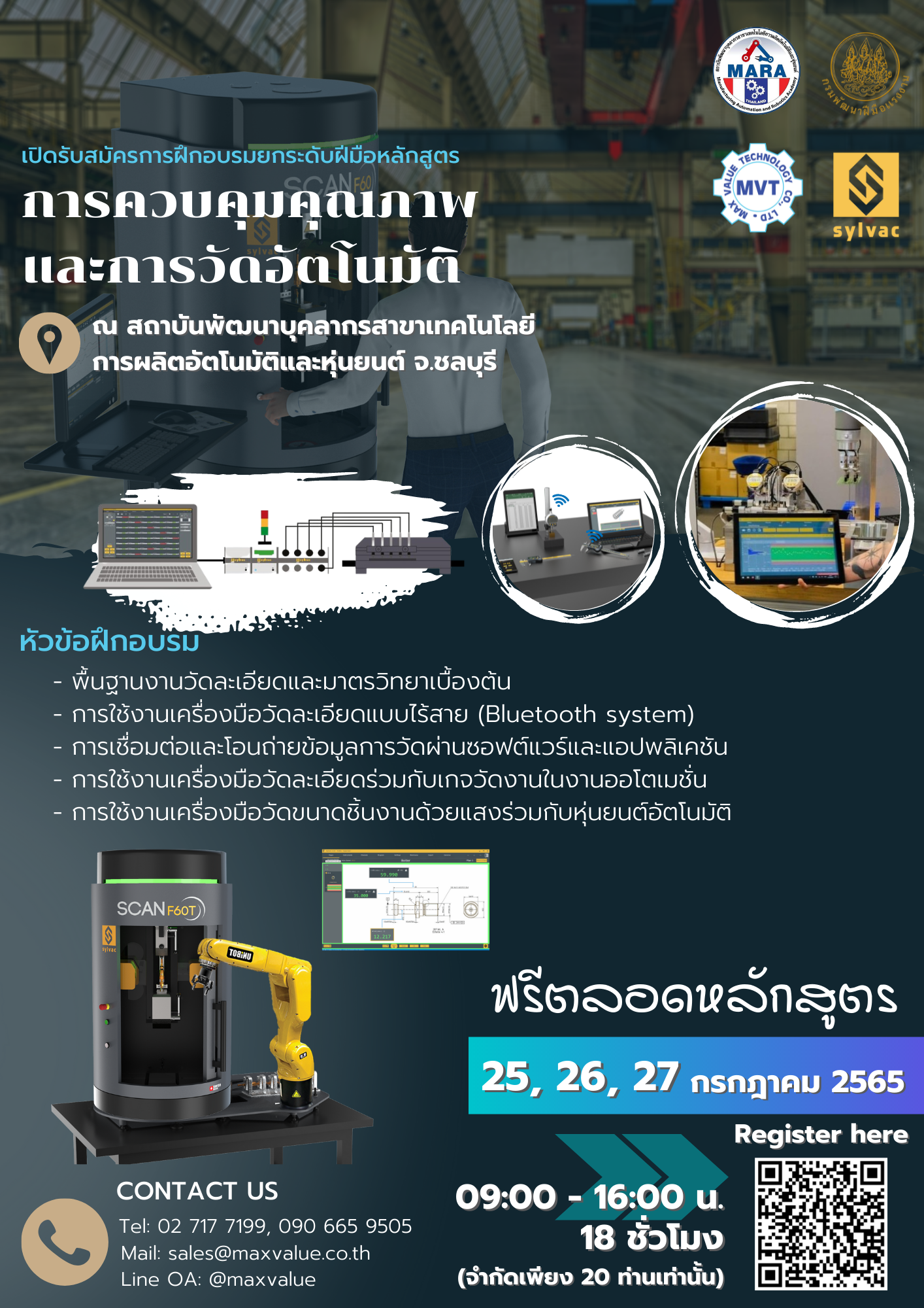 เรียนเชิญร่วมสมัครเข้าฝึกอบรมพัฒนาฝีมือหลักสูตร การควบคุมคุณภาพและการวัดอัตโนมัติ