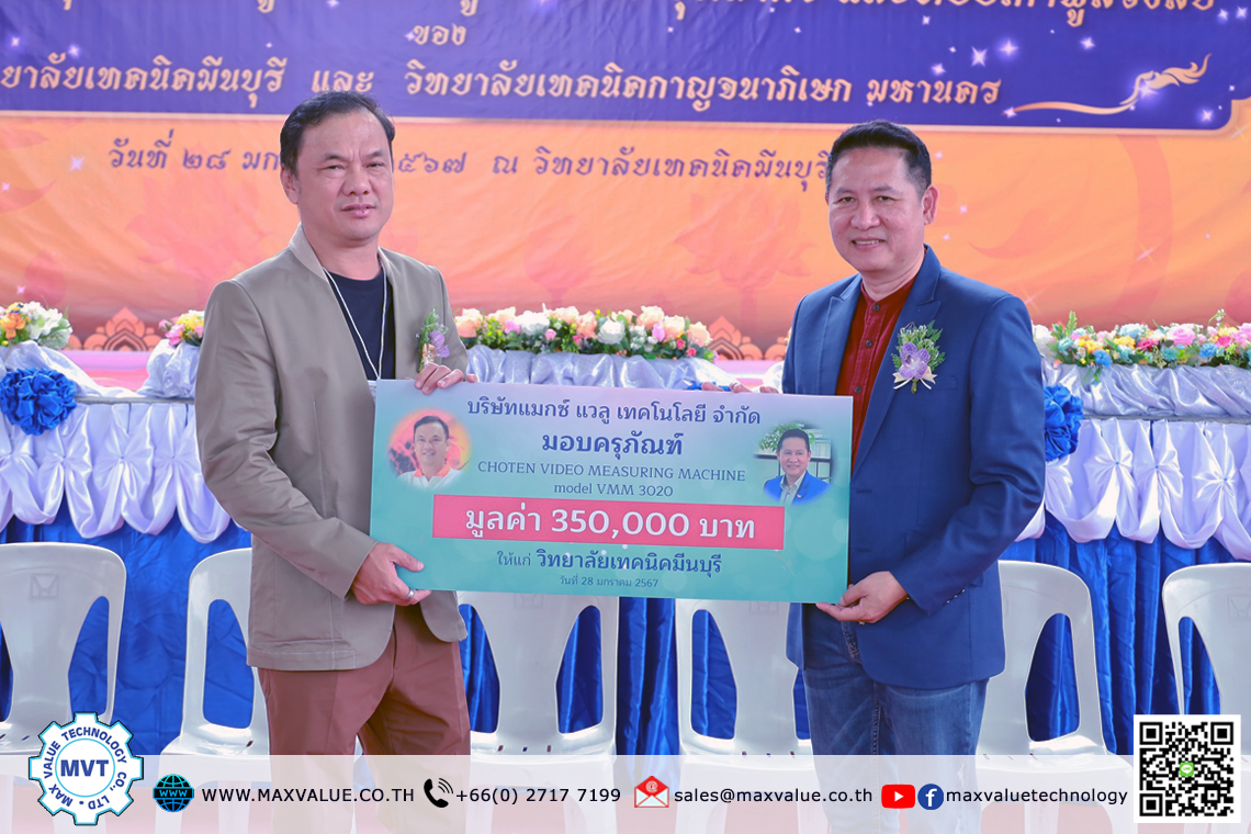 วันที่ 28 มกราคม 2567 สมาคมศิษย์เก่าวิทยาลัยเทคนิคมีนบุรี จัดพิธีทำบุญเพื่ออุทิศส่วนกุศลให้ผู้บริหาร ครู อาจารย์ บุคลากรทางการศึกษา และศิษย์เก่าผู้ล่วงลับ ของวิทยาลัยเทคนิคมีนบุรี และวิทยาลัยเทคนิคกาญจนาภิเษก มหานคร โดยมี ดร.อรรถพล สังขวาสี อดีตปลัดกระทรวงศึกษาธิการ ให้เกียรติเป็นประธานในพิธี พร้อมทั้งนายกสมาคมศิษย์เก่าวิทยาลัยเทคนิคมีนบุรี คณะผู้บริหาร คณะครู บุคลากรทางการศึกษา ศิษย์เก่า ของวิทยาลัยเทคนิคมีนบุรี และวิทยาลัยเทคนิคกาญจนาภิเษก มหานคร ทั้งในอดีตและปัจจุบัน ร่วมกิจกรรมทำบุญพระสงฆ์จำนวน 9 รูป พิธีอุทิศส่วนกุศลให้แก่ผู้ล่วงลับ พิธีถวายภัตตาหาร และจตุปัจจัยไทยธรรม กรวดน้ำอุทิศส่วนกุศล และพิธีดูอาร์ขอพรโดยผู้นำศาสนาอิสลาม กิจกรรมมุทิตาจิต ศิษย์เก่ากราบขอพรจากครูอาจารย์ และรับประทานอาหารร่วมกัน และบริษัทแมกซ์ แวลู เทคโนโลยี จำกัด มอบครุภัณฑ์ มูลค่า 350,000 บาท ให้แก่วิทยาลัยเทคนิคมีนบุรี ณ ลานกิจกรรมหน้าเสาธง วิทยาลัยเทคนิคมีนบุรี