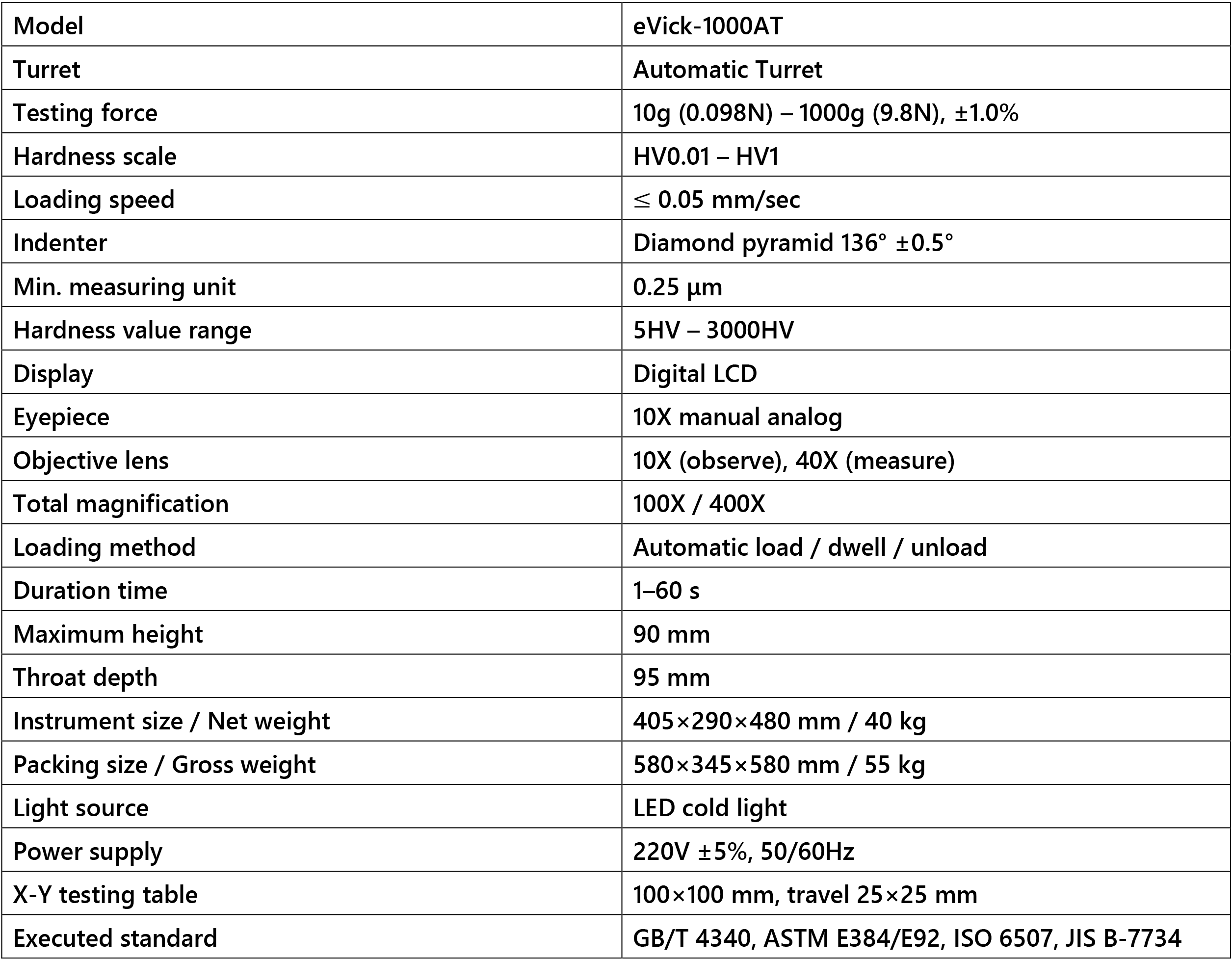 5. With Vickers hardness and Knoop hardness testing capabilities. By measuring the indentation diagonal length, the hardness will show on the screen directly, no need to check hardness table.
