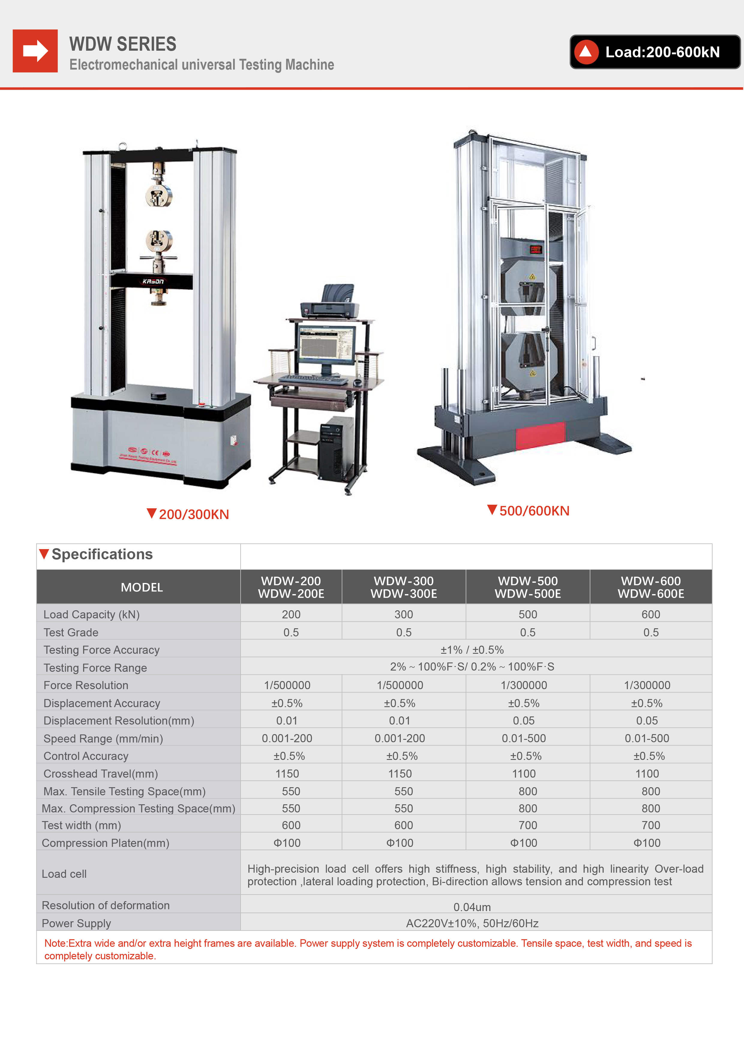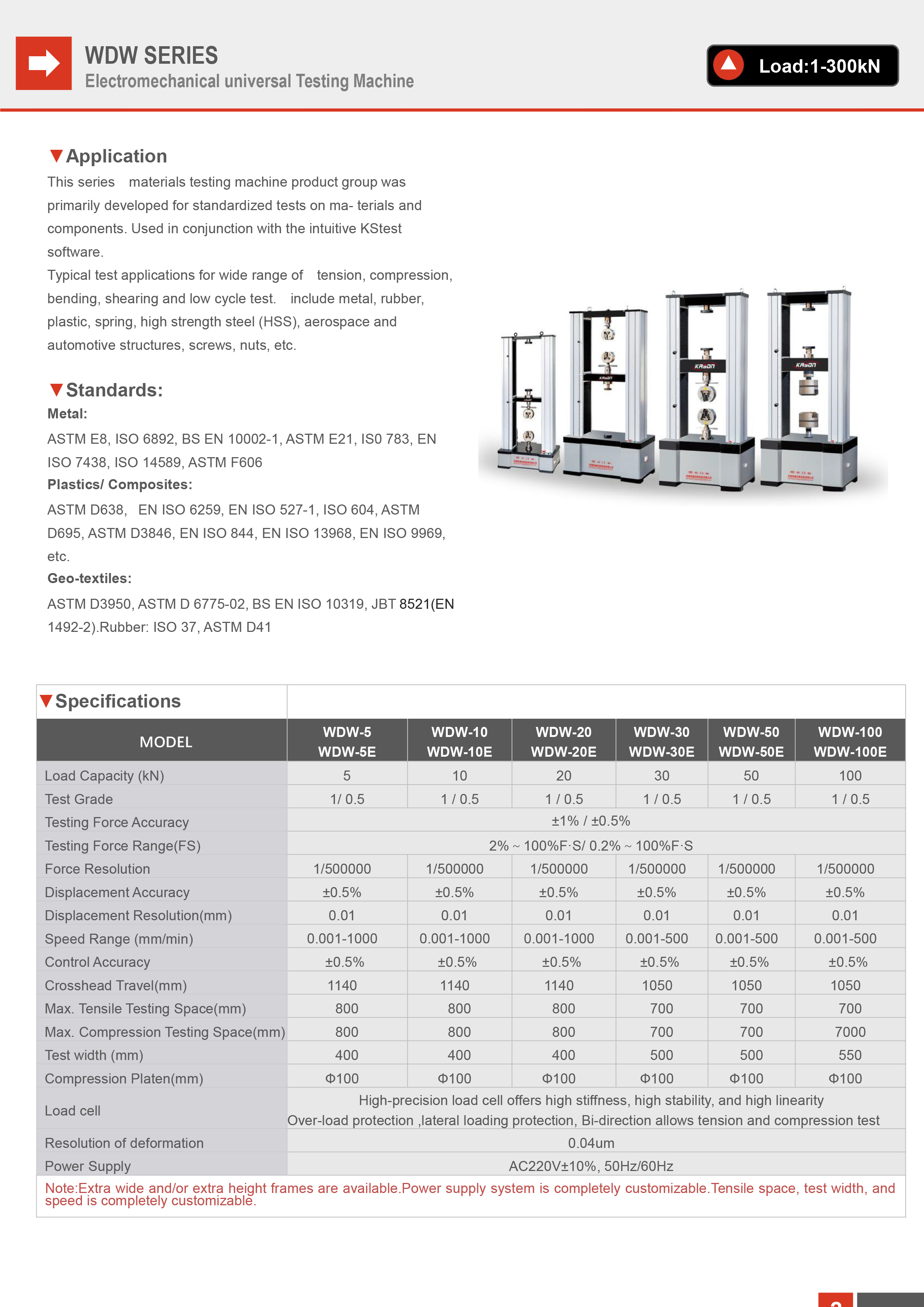 Typical test applications for wide range of tension, compression, bending, shearing and low cycle test. include metal, rubber, plastic, spring, high strength steel (HSS), aerospace and