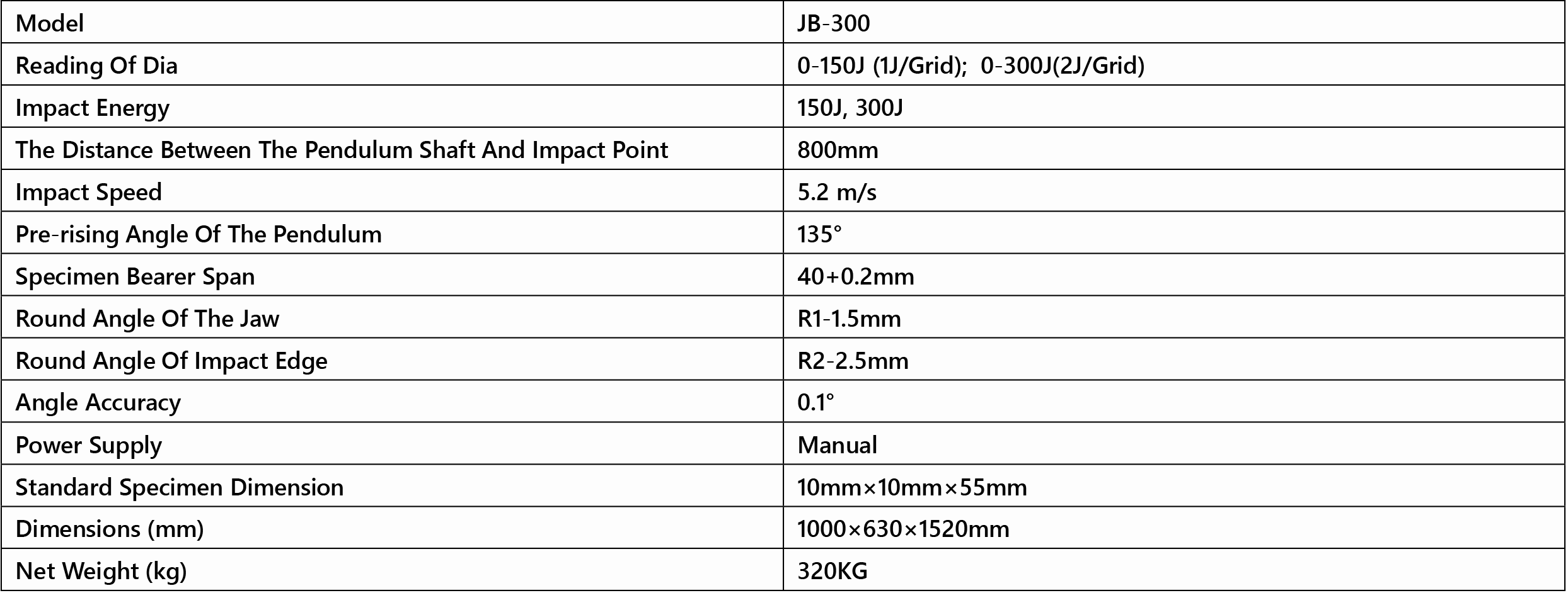 JB-300 Manual Impact Testing Machine is used for measuring the metal material resistance performance under dynamic load, in order to determine the material properties under dynamic load.