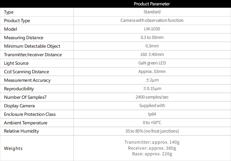 The online digital caliper PMS-LM-1030 has advanced optical technology, high-brightness green LEDs, and telecentric lenses and HL-CCDs on the receiving end to improve measurement speed, measurement accuracy and product durability.