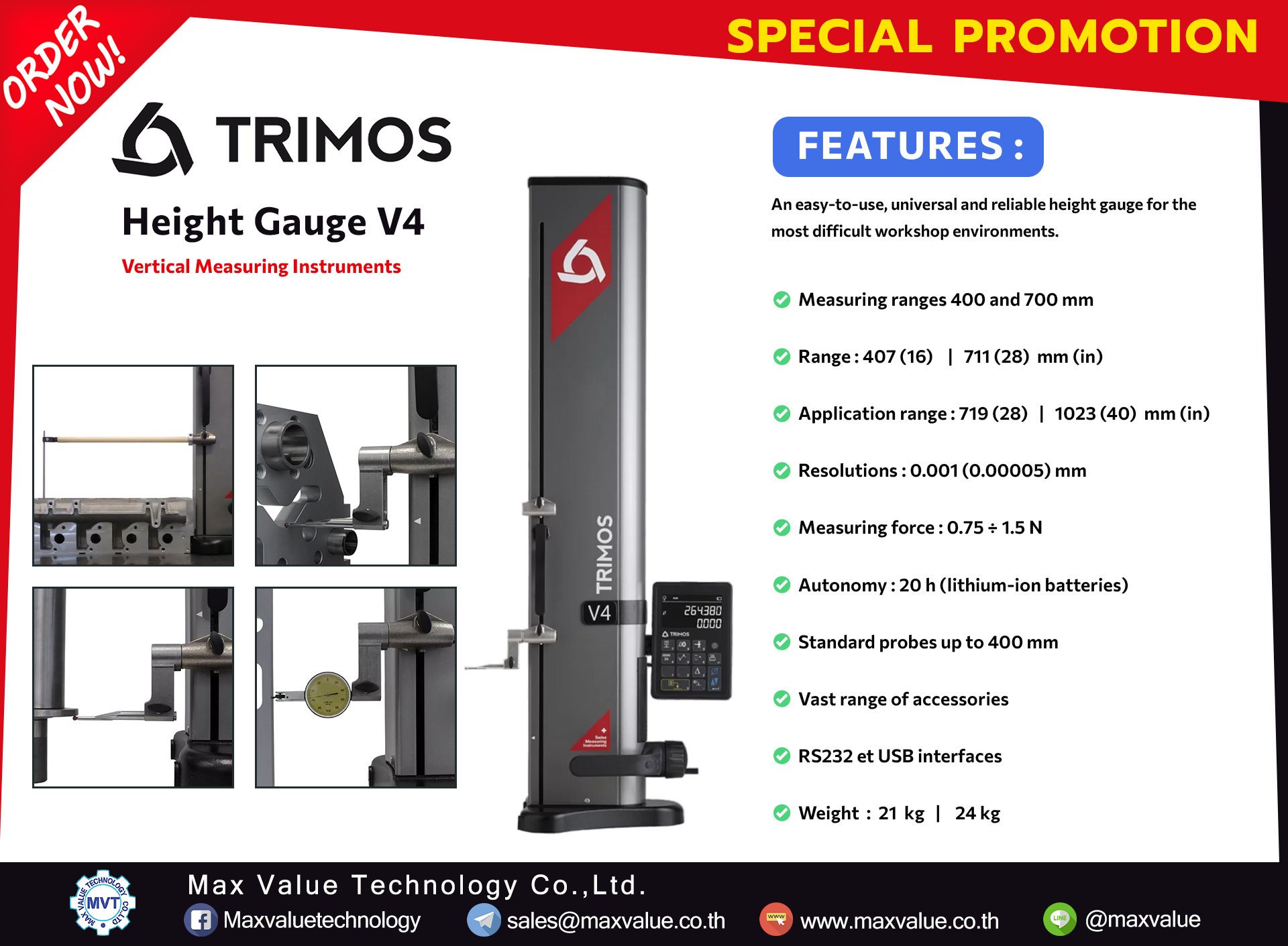Explore the vast range of accessories available, enhancing the adaptability of the Trimos Height Gauge V4 to meet your specific measurement needs. Invest in precision, reliability, and efficiency – choose Trimos for a superior metrology experience.