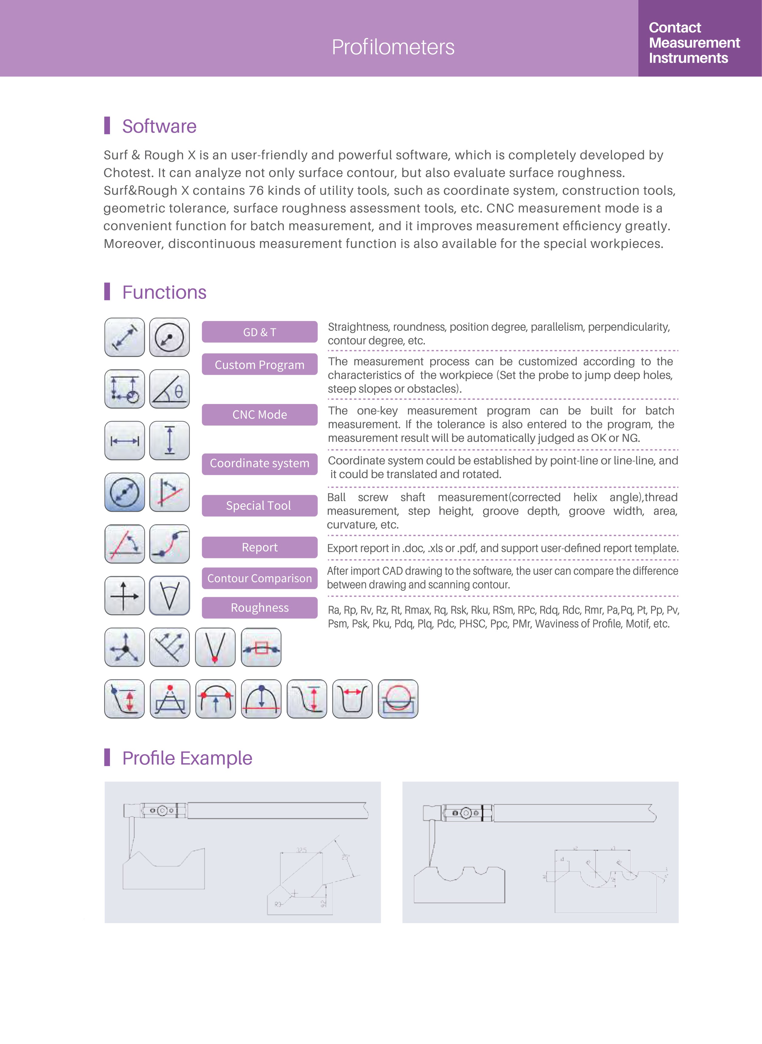 1. Surface contour evaluation: It can evaluate radius, angle, distance, coordinates, circle, circular cross section, and determine the points, each intersectant point, coordinate axis, straight line, vertical line, circle and circular cross section, and analyze the straightness, roundness of contour; More functions: