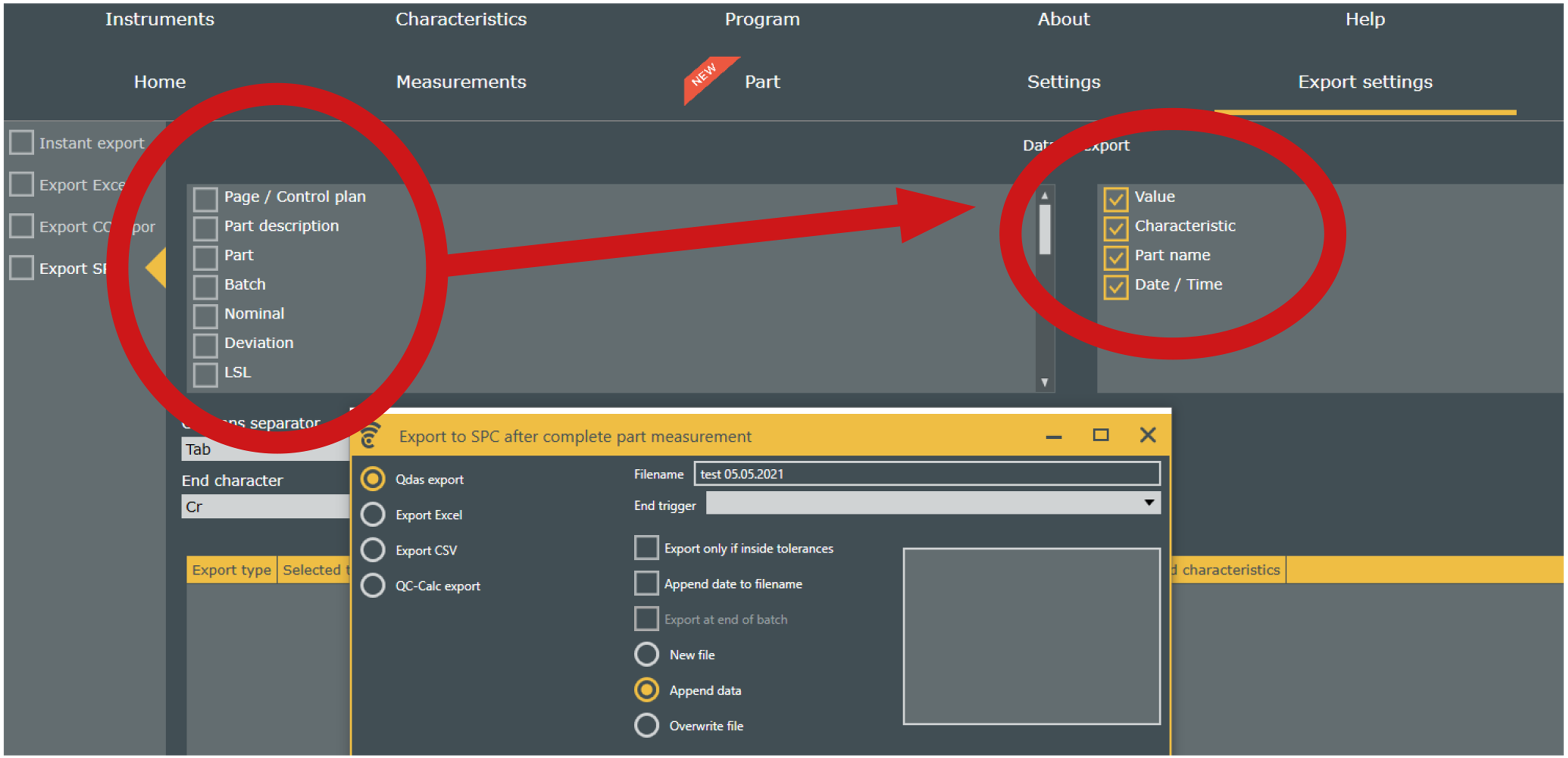 - Possibility to select the elements or values to export. Particularly important for QDAS export.