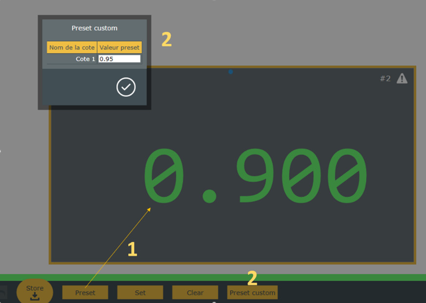 - Allows the operator to modify the preset manually during the execution of the control plan, for example in internal measurements with pistol grips whose preset is significantly different for the same nominal.