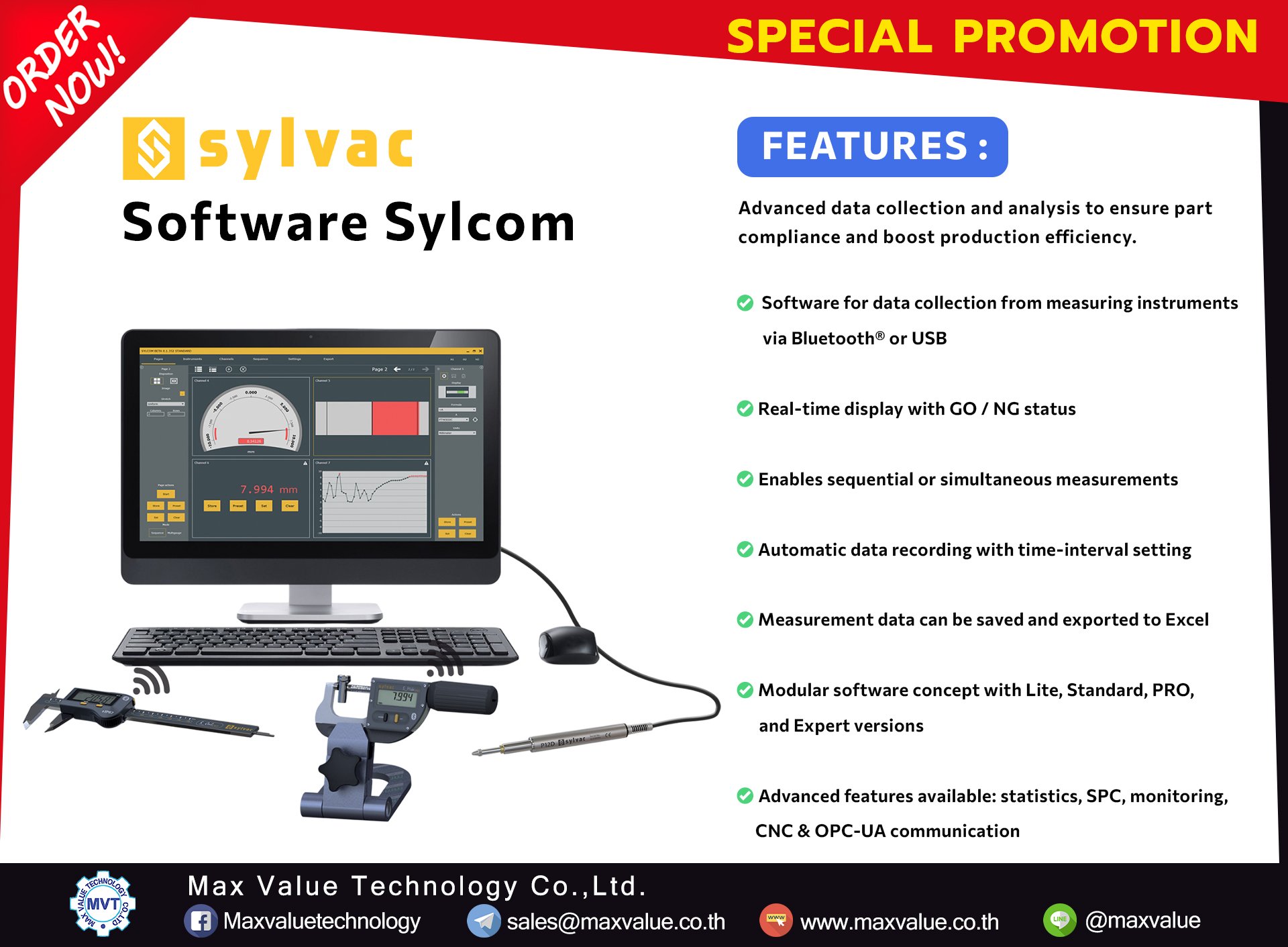 Sylcom is a versatile and powerful software used for collecting and analyzing data from connected instruments (Bluetooth or cable), making it an essential software for production and quality control.