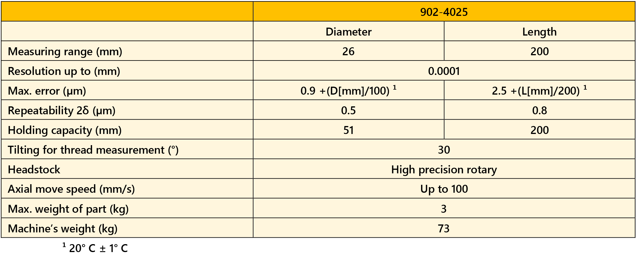 • Vertical optical measuring machine for static and dynamic measurement of various elements on small cylindrical parts.