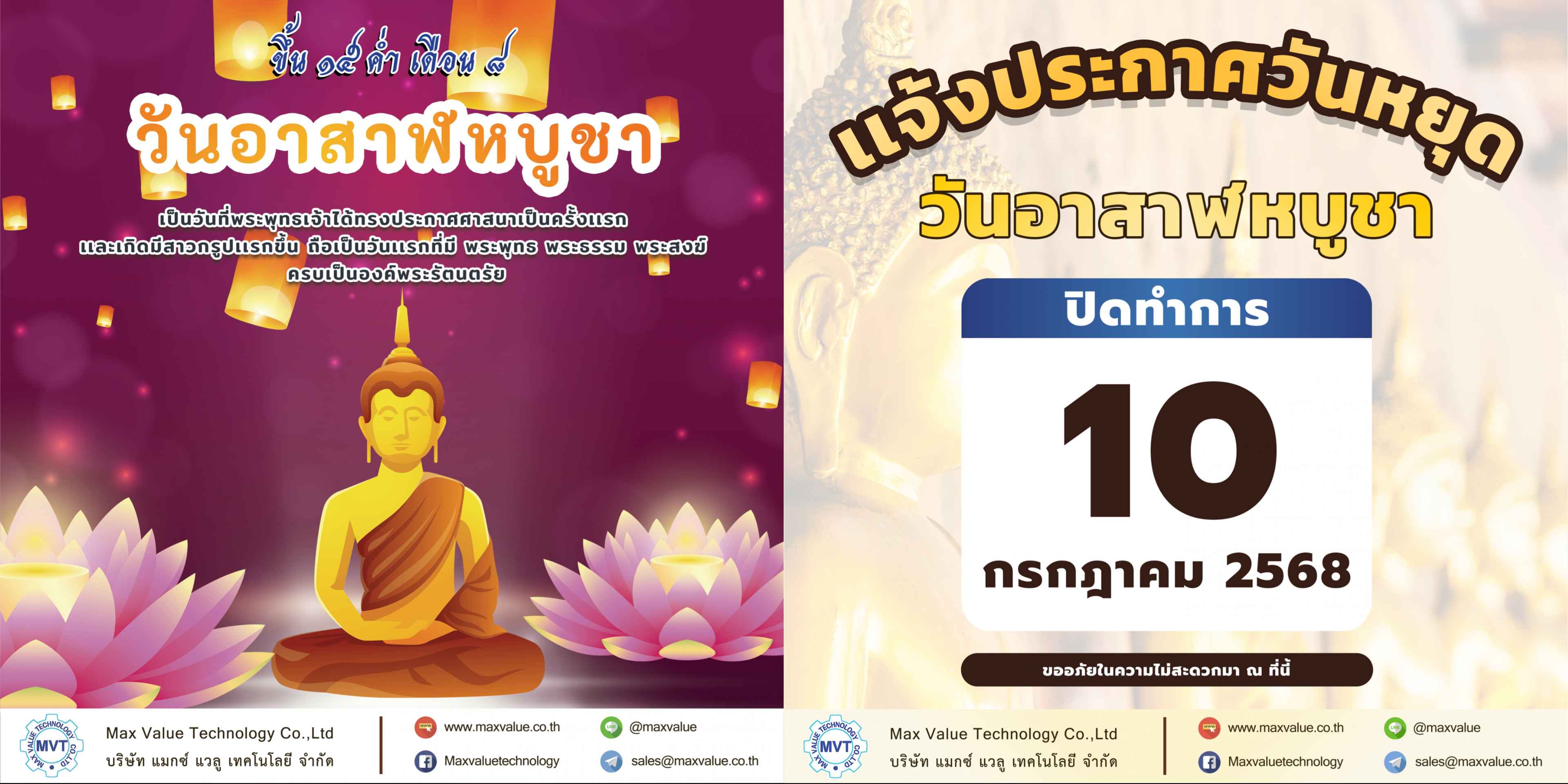 "เเจ้งประกาศวันหยุดเนื่องในวันอาสาฬหบูชา ประจำปี 2568"