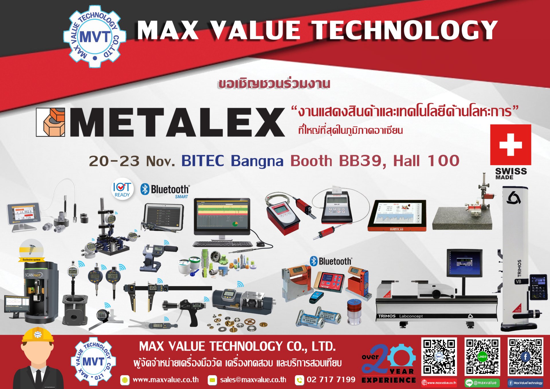 ทางบริษัท แมกซ์ แวลู เทคโนโลยี จำกัดได้นำเครื่องมือวัดละเอียด เครื่องทดสอบต่างๆ มาให้ท่านได้เยี่ยมชมและทดลองใช้งาน โดยเครื่องมือที่นำมาจัด