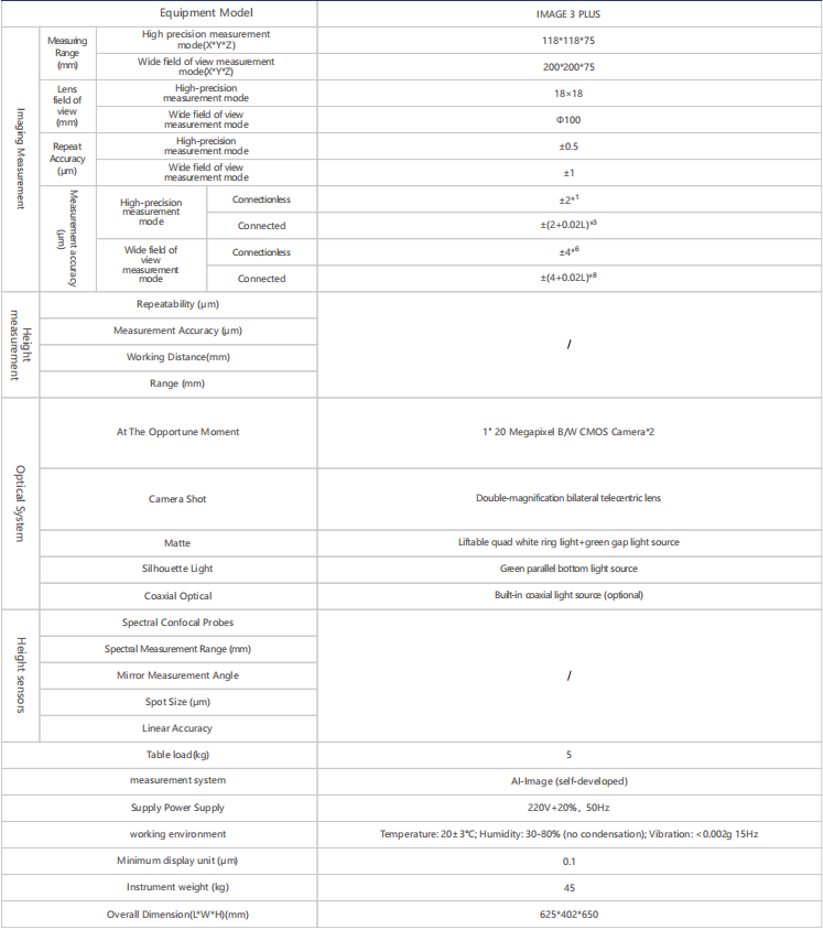IMAGE 3 PLUS Image Measuring Instrument Parameter