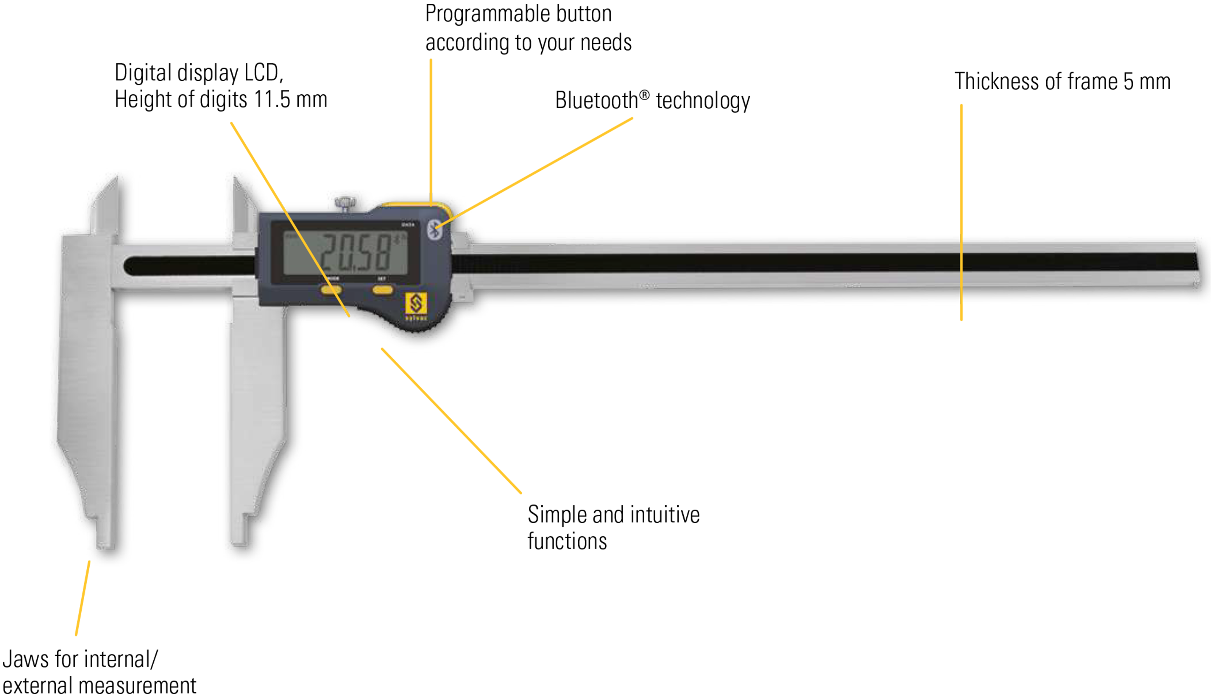 High-quality, ergonomic caliper with integrated Bluetooth® system