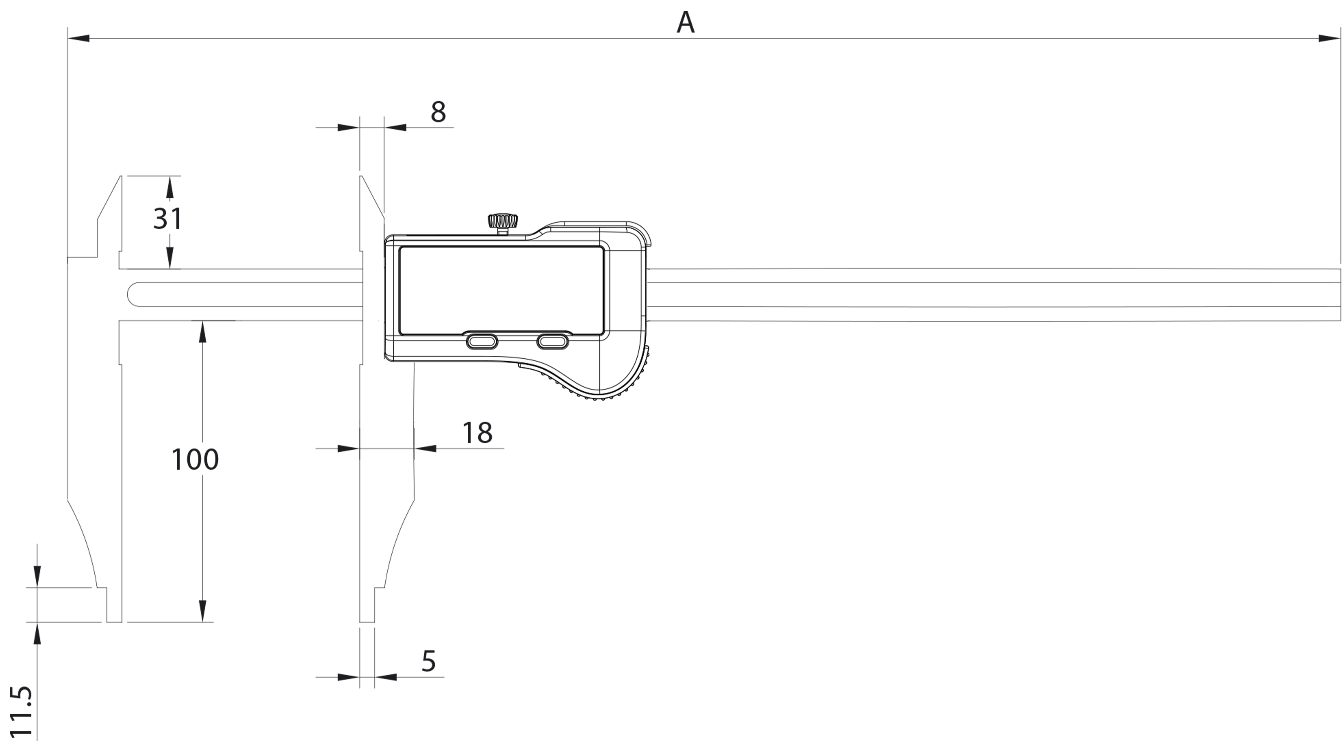 Equipped with long 100 mm beaks free at the end for measuring both external and internal dimensions from 10.1 mm and small top beaks for measuring internal dimensions.