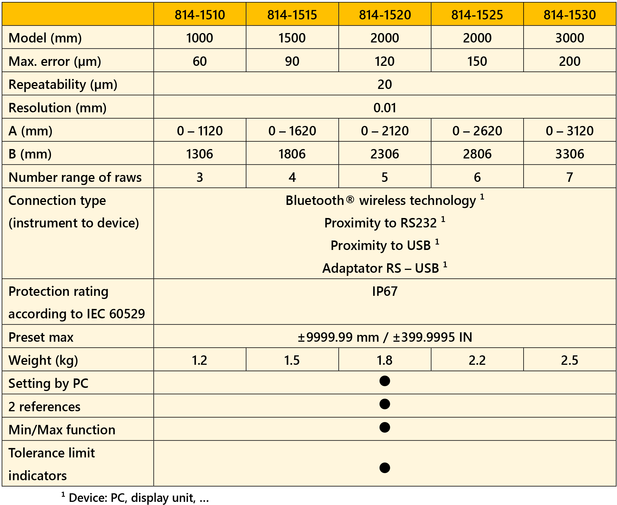 • Measuring range 1000 and 3000 mm