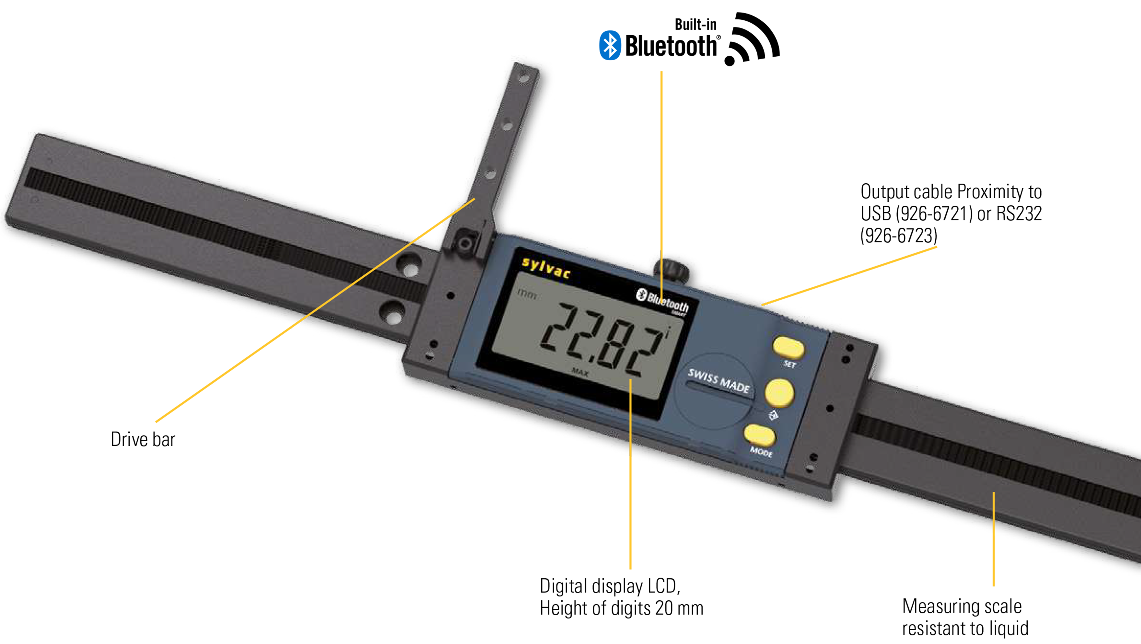 • Ultra-light, large linear ruler with integrated Bluetooth® system